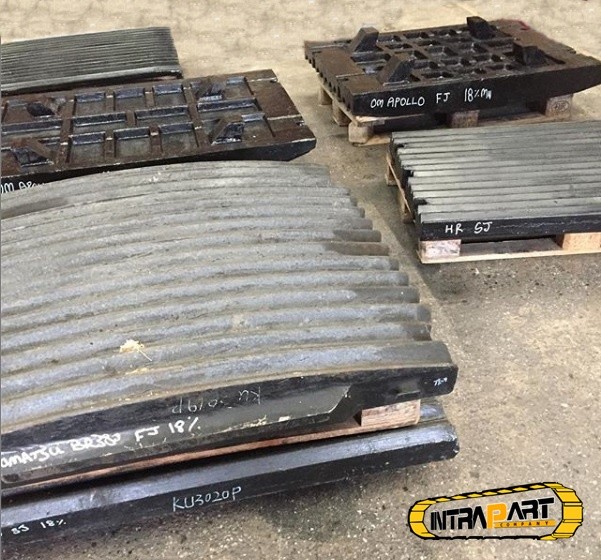Pe lângă falci de concasare, oferim și alte componente esențiale pentru utilajele de concasare, cum ar fi plăci de presiune, blindaje, axuri excentrice, lagăre și hidromotoare pentru benzi sau marș.